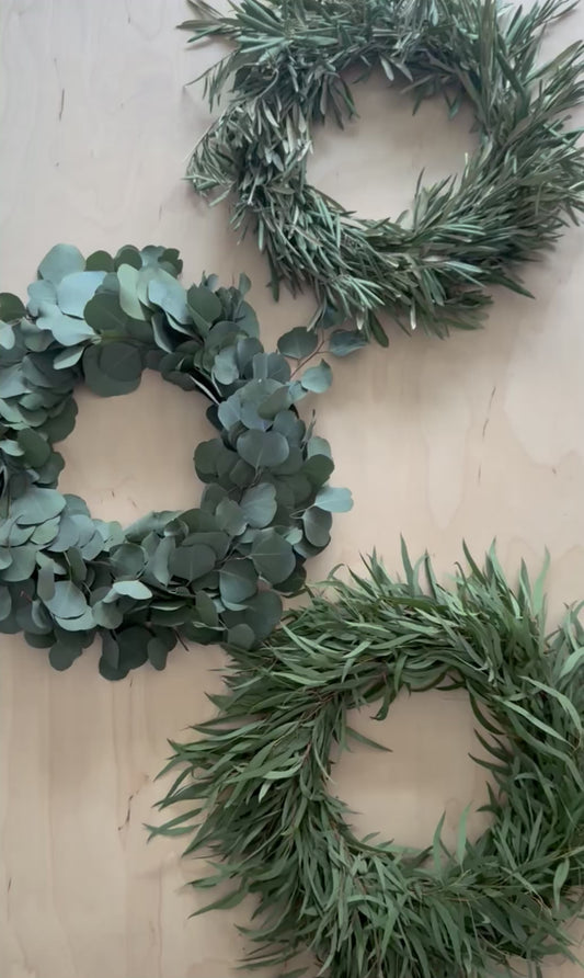 A collection of fresh garlands & centrpieces made from eucalyptus or olive branches. These can be accented with flowers of choice too. Minimum 3 weeks notice to order.