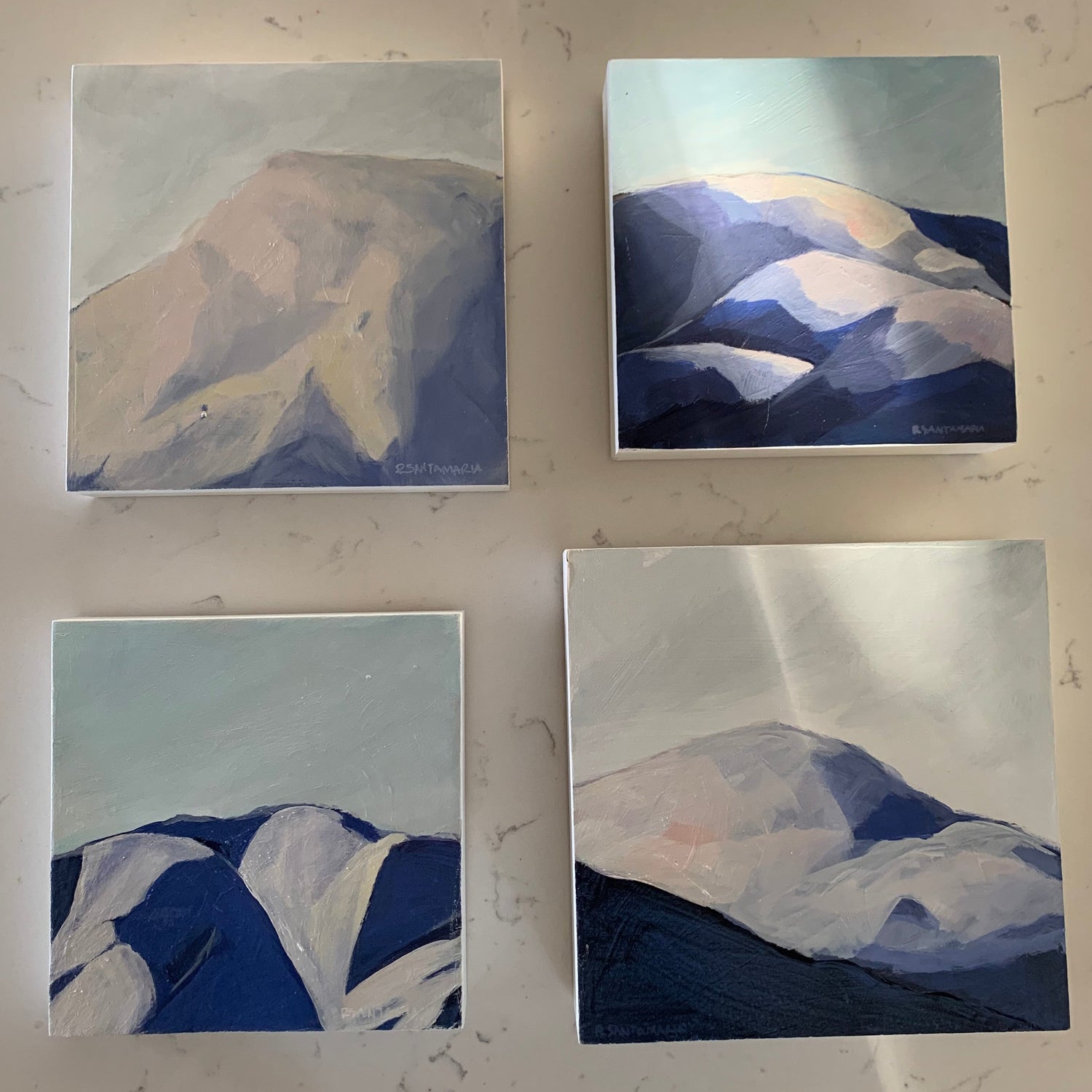 Rooted in the landscapes of the Okanagan mountains, my acrylic paintings explore the interplay of light and shadow as fleeting moments of experience. I focus on brief, often overlooked instants - a shift in light, a passing shadow - capturing them as quiet pauses held in paint through a restrained colour palette.